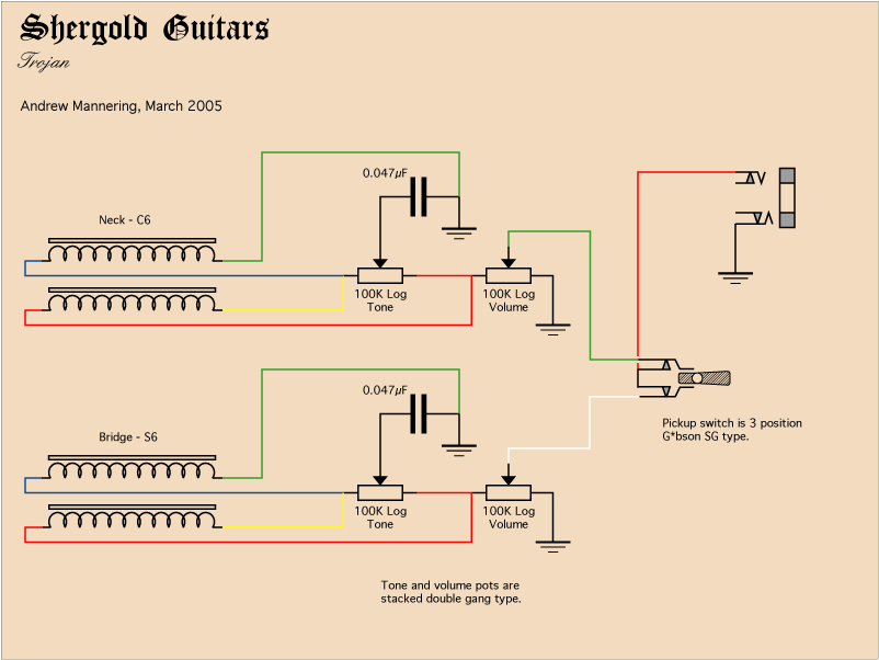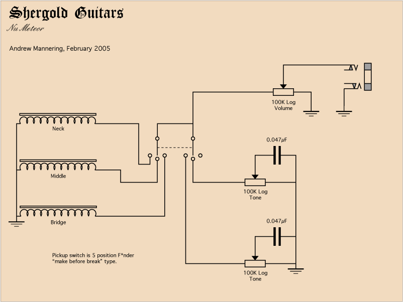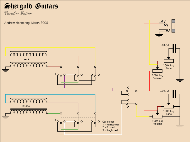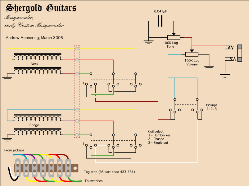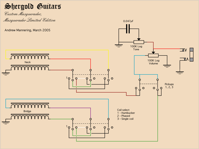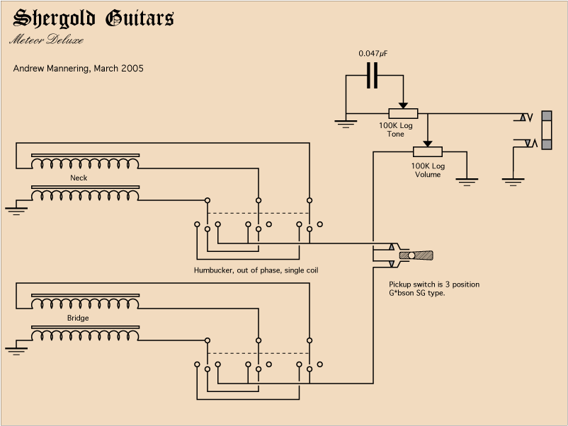 switch is provided between the volume and tone controls to give single coil, humbucker and