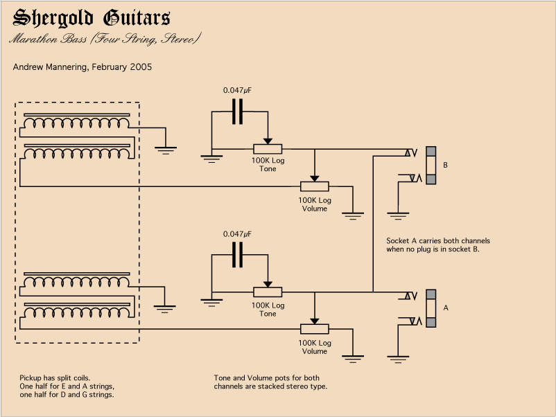 The four and eight string (pre-Mark 2) basses are fitted with a single split pickup and stereo controls and wiring -